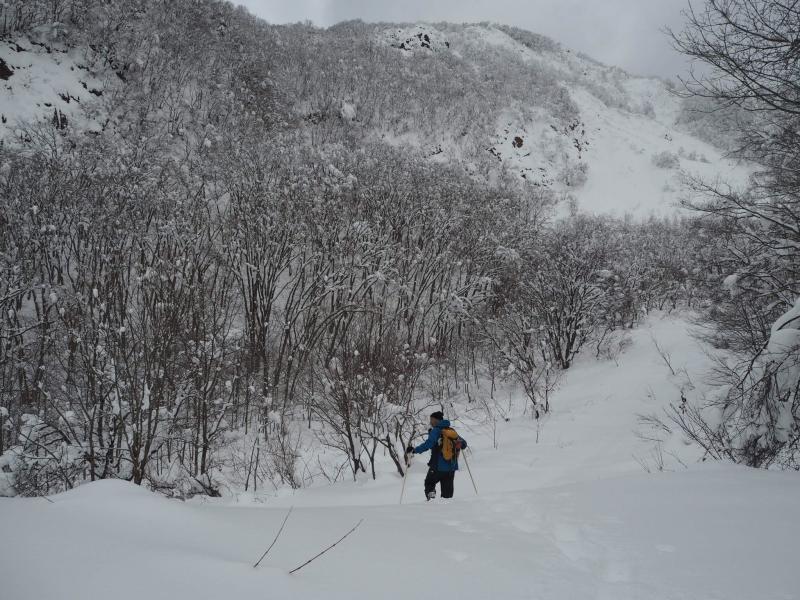 登山地図でみると周回コースもありますが、時計回りコースで通過する沢筋の雪の状態が予想できないのでおすすめできません。
