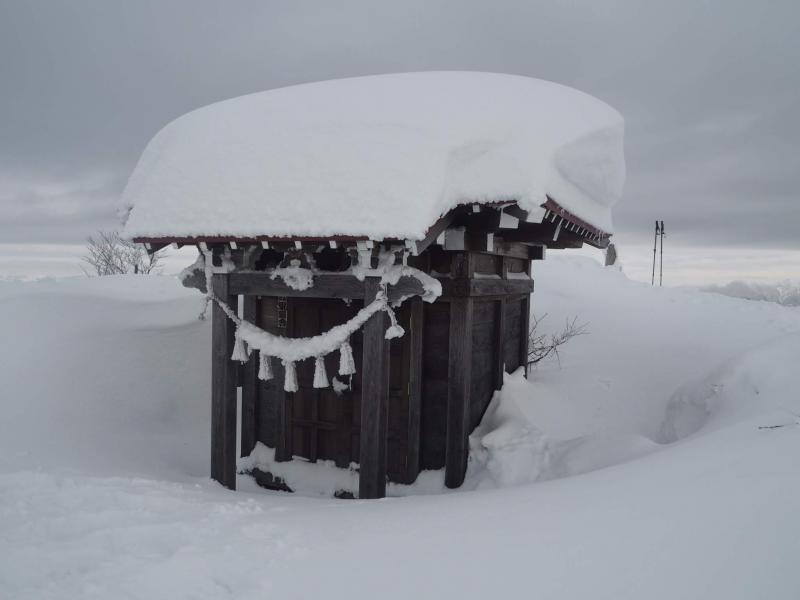 山頂手前でしばらく稜線を歩きますが東側の崖に雪庇が発達しており、崖が切れ落ちているため少し注意が必要です。