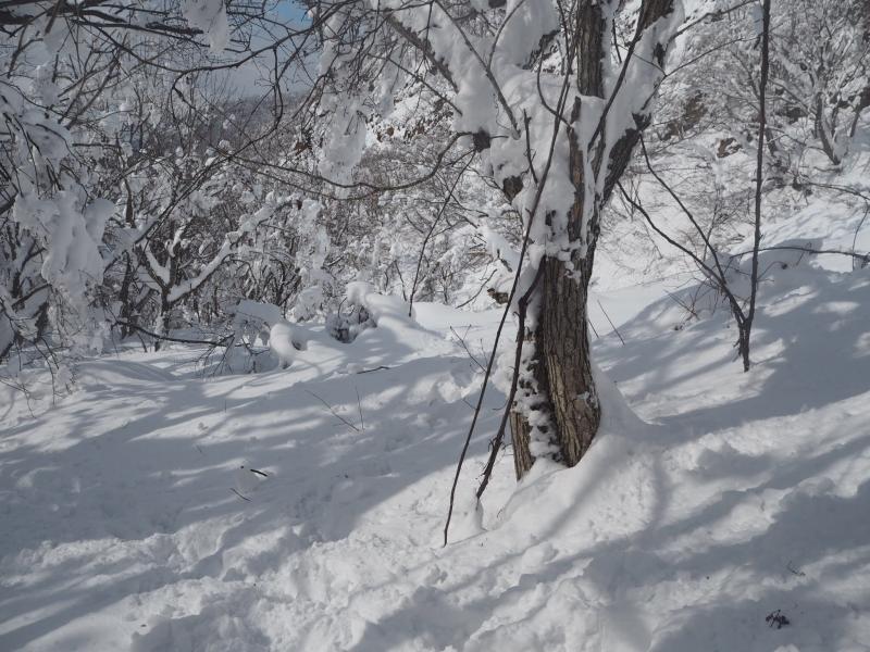 さらに木の先端が邪魔で歩きにくい為、西側斜面をトラバースしたほうが無難だと思います。