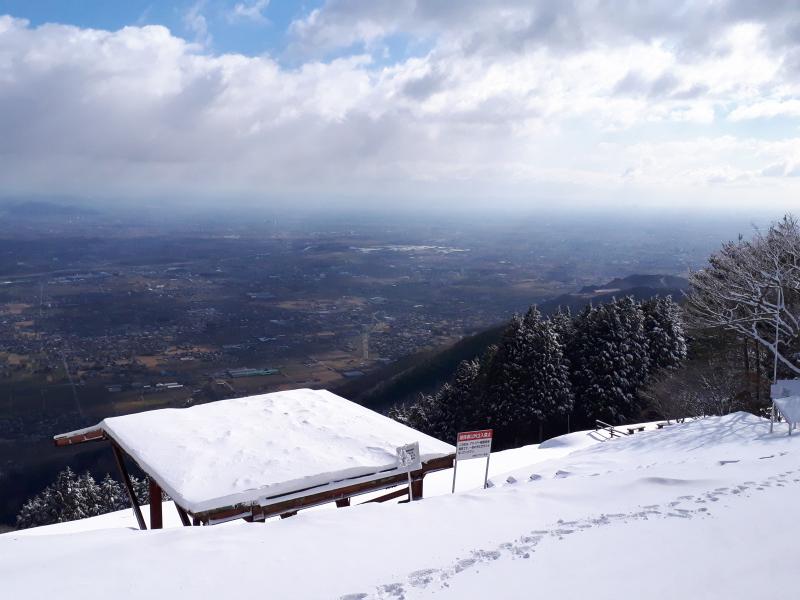 ここは遮るものがなく、真っ白な雪原と岐阜市が一望できるおすすめスポットです。