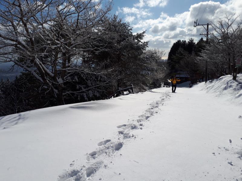 すでに先行者が数名いましたが、景色の開けるパラグライダー離陸所では、足跡は付いていなくてふかふかの雪を楽しめました。ごちそうさまでした。