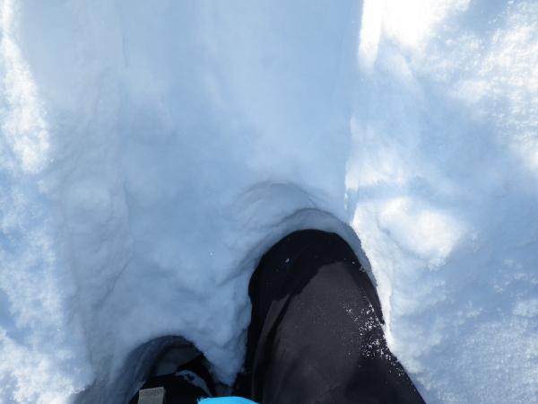 なんども腰まで埋まってしまい必死にもがき脱出。