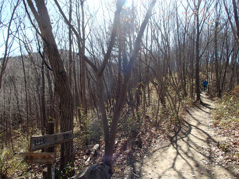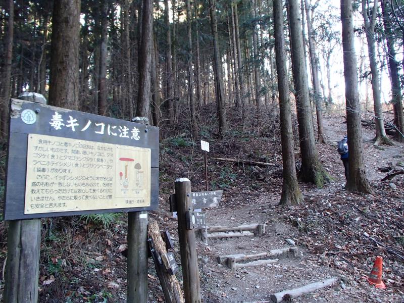 野上駅>10分>登山口>45分>奈良沢峠>10分>毒キノコの看板>12分>山頂>(蠟梅園周遊30分)>35分>宝登山神社>10分>長瀞駅>3分>石畳>3分>長瀞駅