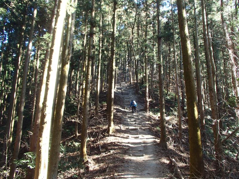 登り始めは緩やかな登りですが、その後尾根に出る急な登りになります。短いけど。
