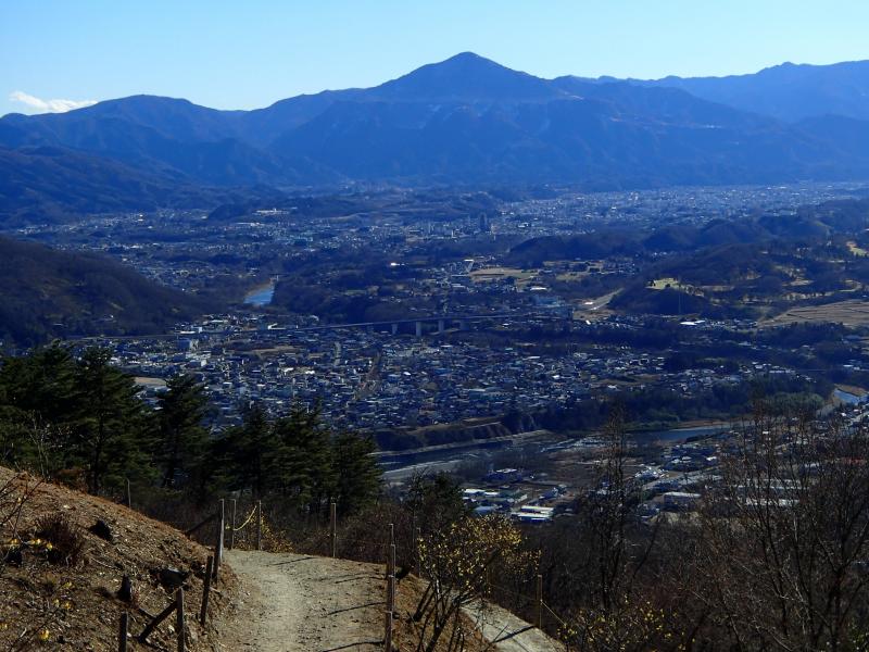 ・登山口から10分もたたないうちに尾根道に出ます。緩やかなアップダウンが続く快適な登山道です。前方に宝登山が見えたり隠れたりしながら、展望を楽しみながらのんびり歩けます。