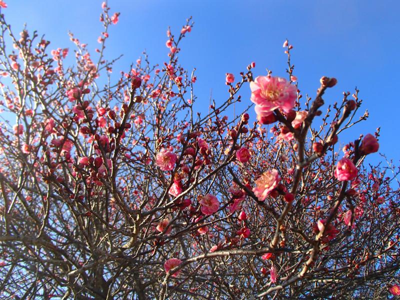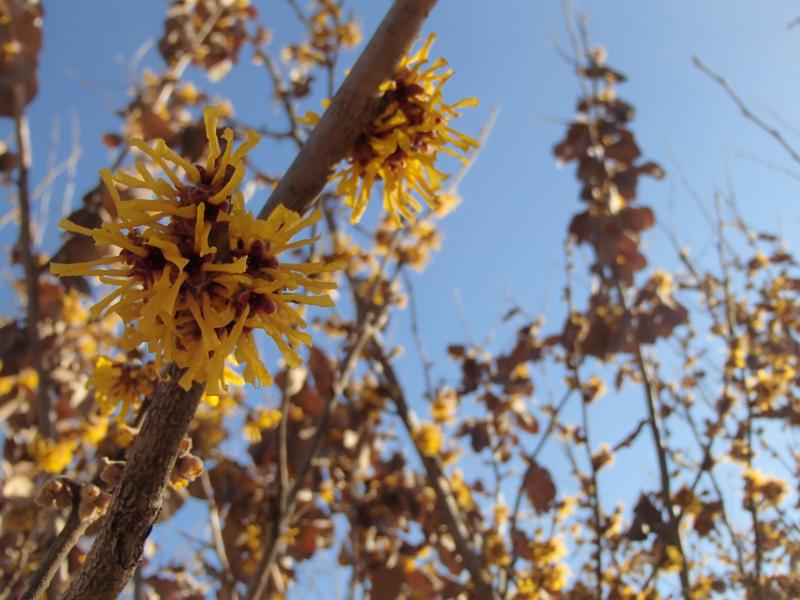 ・山頂付近の蠟梅園はこれからが見頃の様です。ロープウェイ駅付近の東蠟梅園は開花、西蠟梅園は3分咲き」といったところでした。蠟梅の甘い香りがたまりません!また、梅も福寿草もチラホラ咲いていましたし、マンサクの花も楽しめますよ。