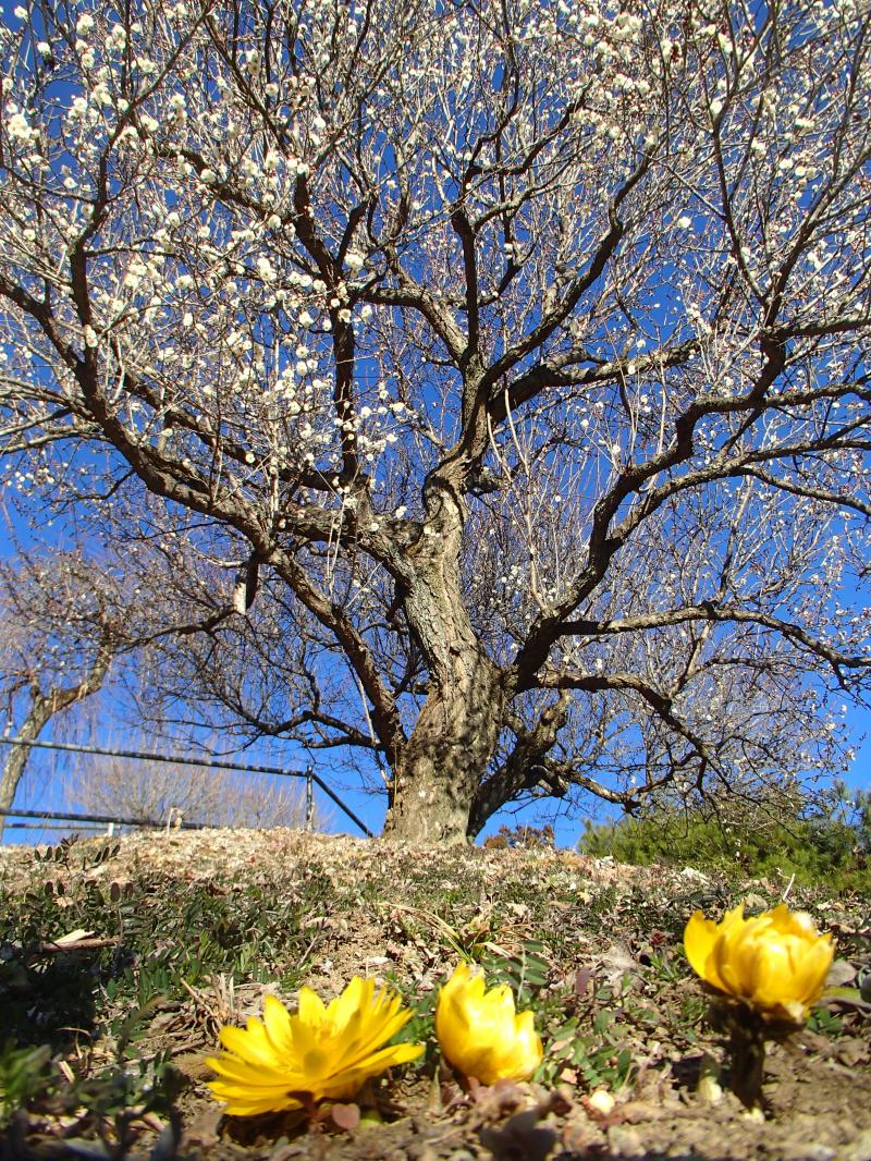福寿草と梅の競演!春はすぐそこまでやって来ているようです。