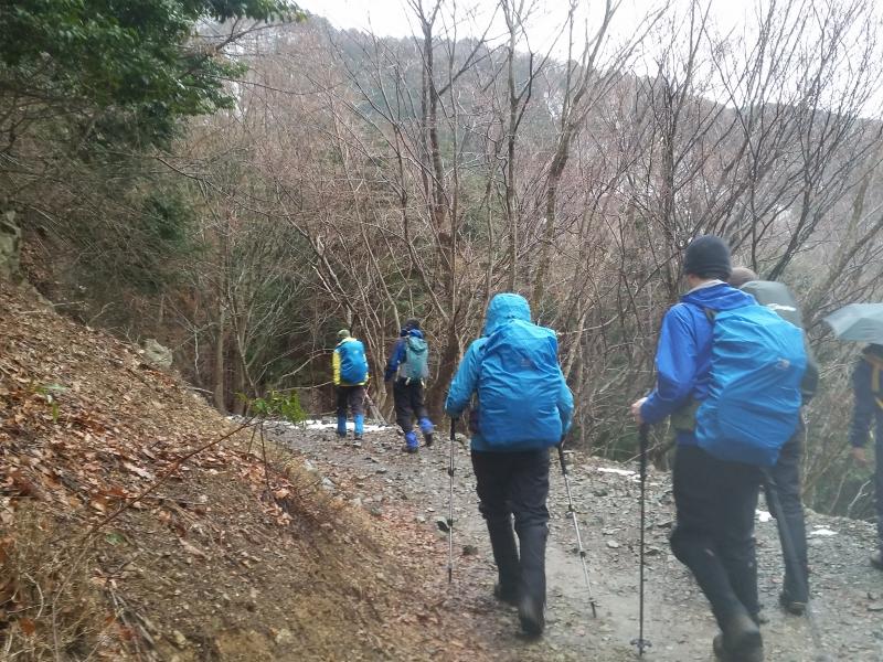 小雨の中スタート。本来なら雪なんでしょうが、暖冬です。