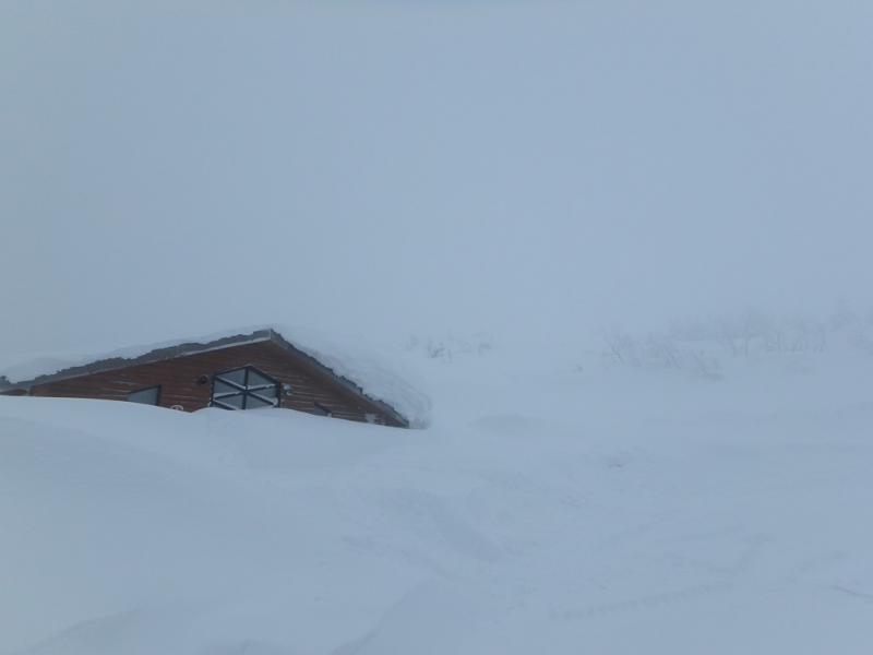 下りは上富良野岳と上ホロの間のコルから下りましたがここも向かい風で結構難儀しました。安政火口に戻って1時すぎ、化物岩への継続も頭がよぎりましたが温泉の誘惑に負けて少し早めに下山しました。何度も行っている北西稜ですが天候が荒れれば決して侮ることができないルートと再認識しました。