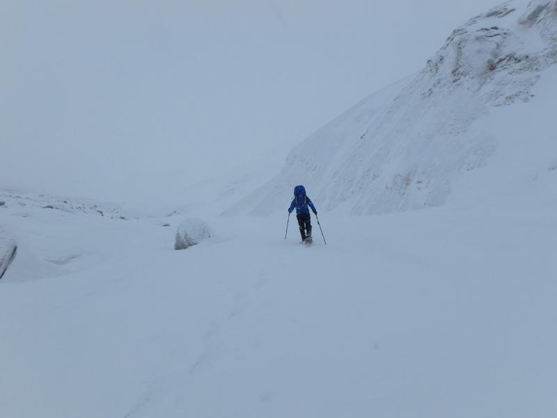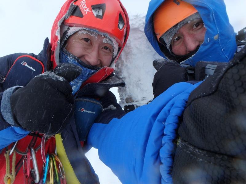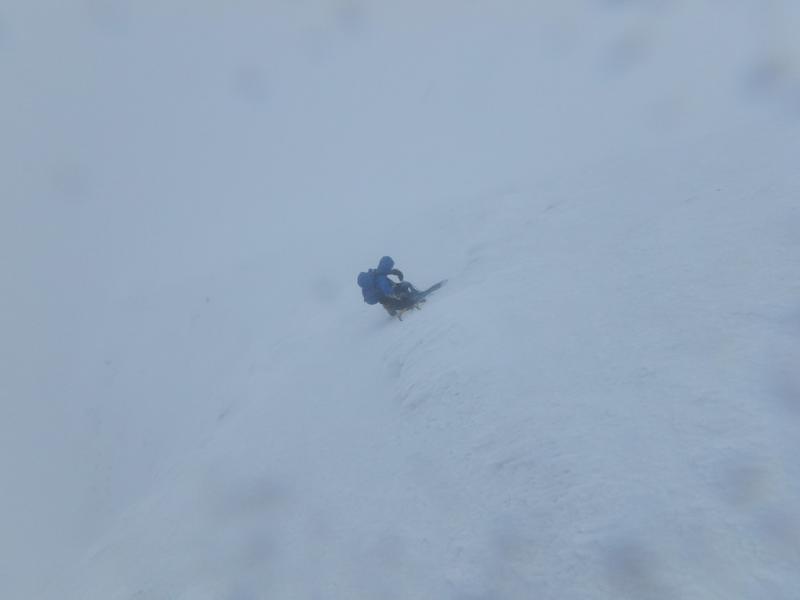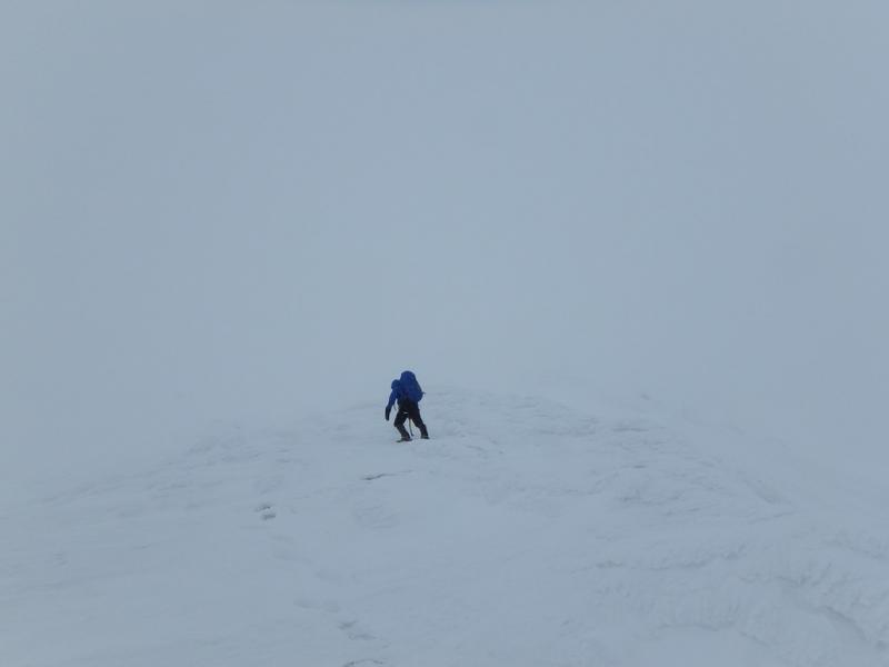 歩き始めから曇り空で北西稜取り付きからは視界も悪くない、風も強烈に・・。引き返そうかな~、とも思いましたが、同行者の「行きましょう!」という強い言葉で気持ちを奮い立たせて強風に立ち向かい頂上に。
