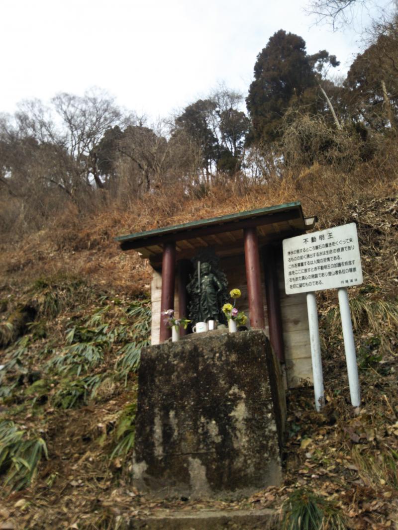 - 登山口(25分)観音地蔵(15分)不動明王(10分)観音平(10分)山頂(45分)登山口