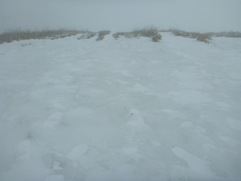 山頂に近付くにつれて少しずつ雪が出てきました。