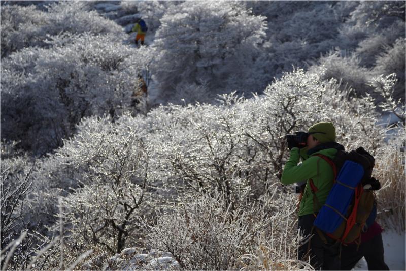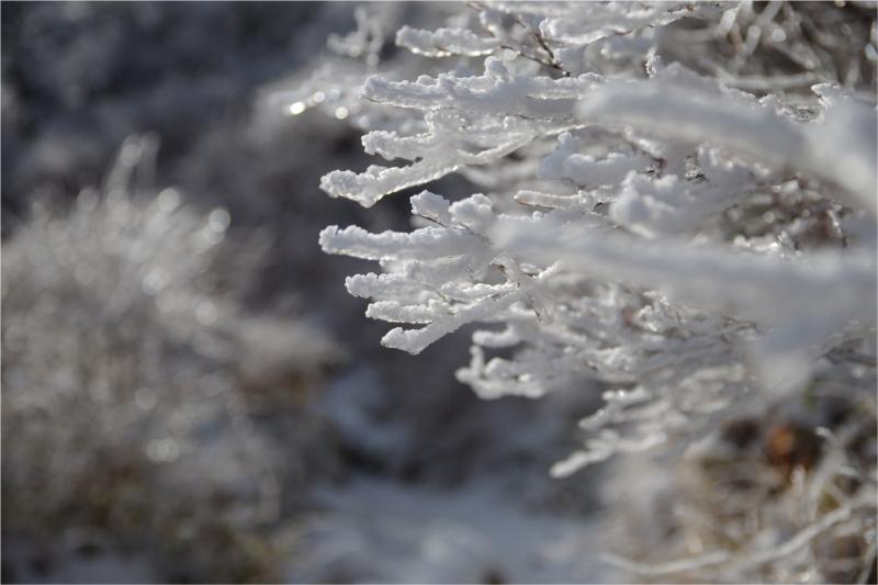 また、途中の樹氷や霜柱などもキラキラと輝き、友人たちはキャッキャと写真撮影にいそしんでいました。