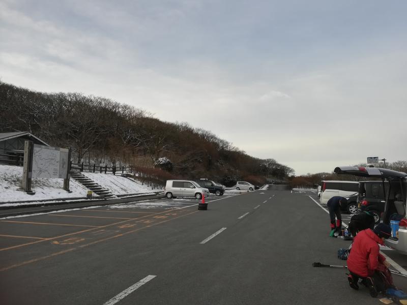 牧ノ戸峠は雪が少なく、登り始めは凍結している所もありましたが、アイゼンなしで登山開始。