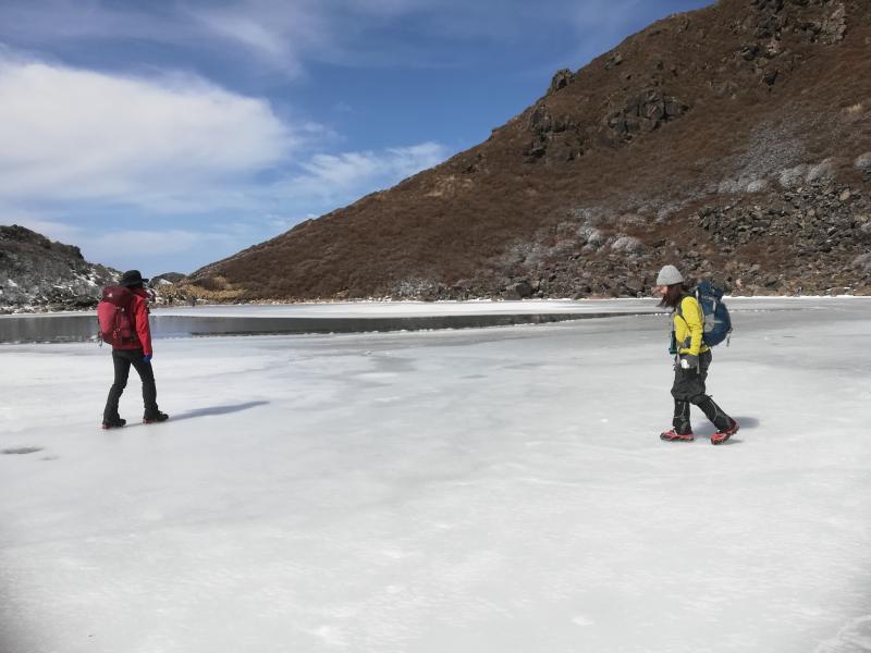 また、氷が解けだしたと聞いていた御池も何とか歩くことができ、昨年途中断念した友人も喜んでくれ、来たかいがありました。
