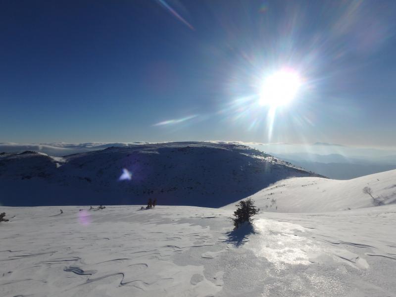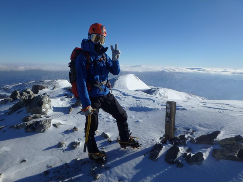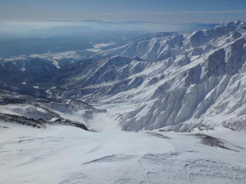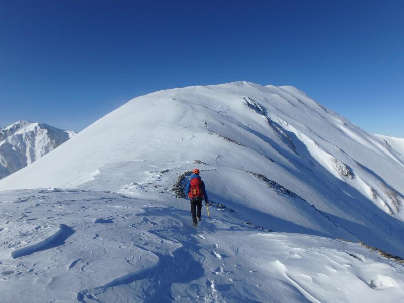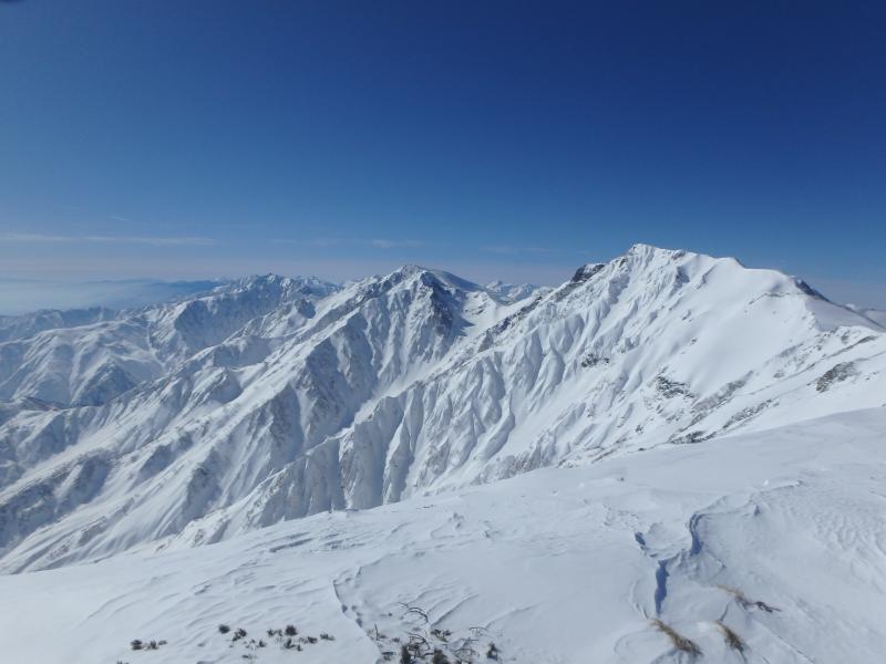 余計な荷物をデポし、とりあえず小蓮華方面へ登ります。稜線上は雪が硬くしまりアイゼンがよく刺さり、非常に快適でした。