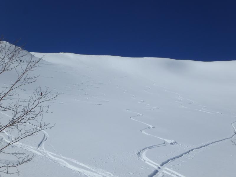 日曜日ということもあり入山者(ほとんどBC)多く、乗鞍岳周辺はたくさんのトラックが斜面に刻まれていました。
