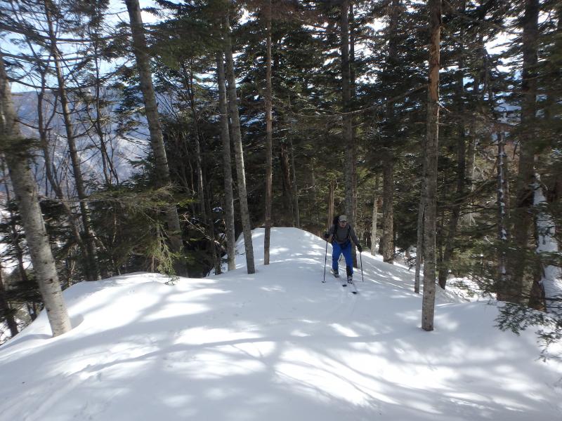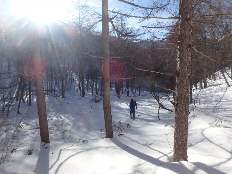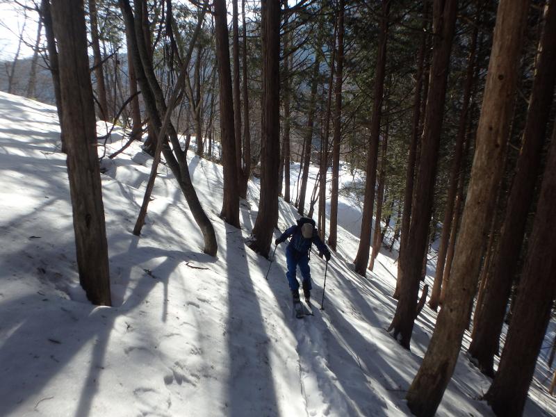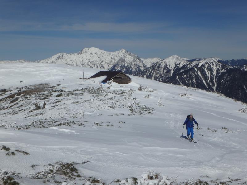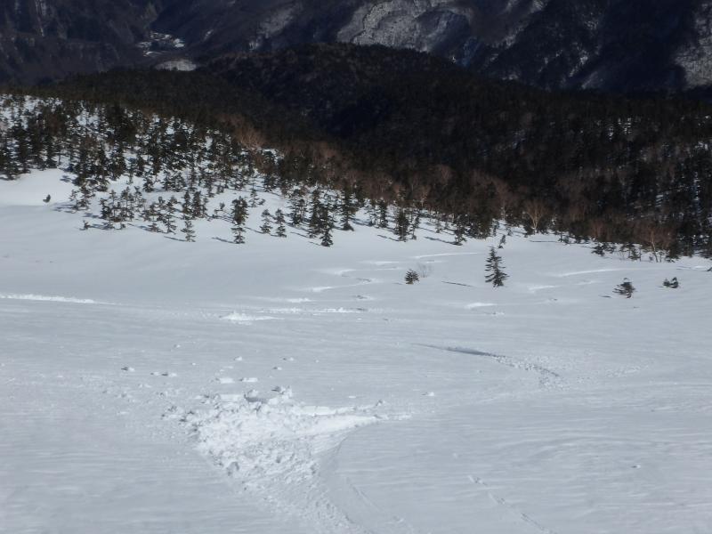 下山時は中盤の平らな台地がいやらしく、場合によってはシールをつけてのハイクを強いられますが、今回は雪が良く締まっていたのでそのまま白骨温泉まで滑り通せました。