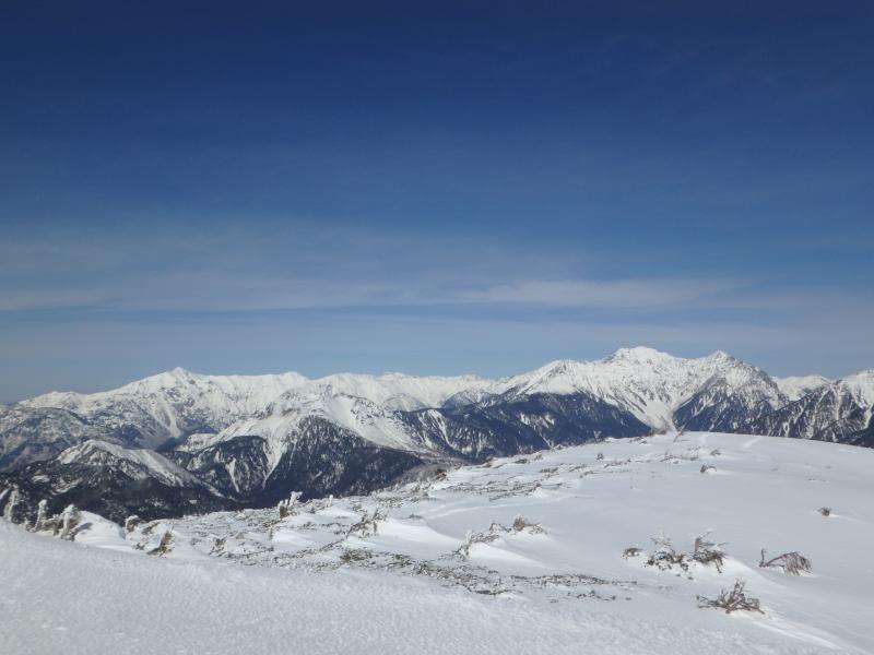 十石山は乗鞍岳と焼岳のちょうど中間に位置する山。つまり眺めが最高です。北は笠~穂高、南は乗鞍と、かなり近い。ずっと眺めていられます。