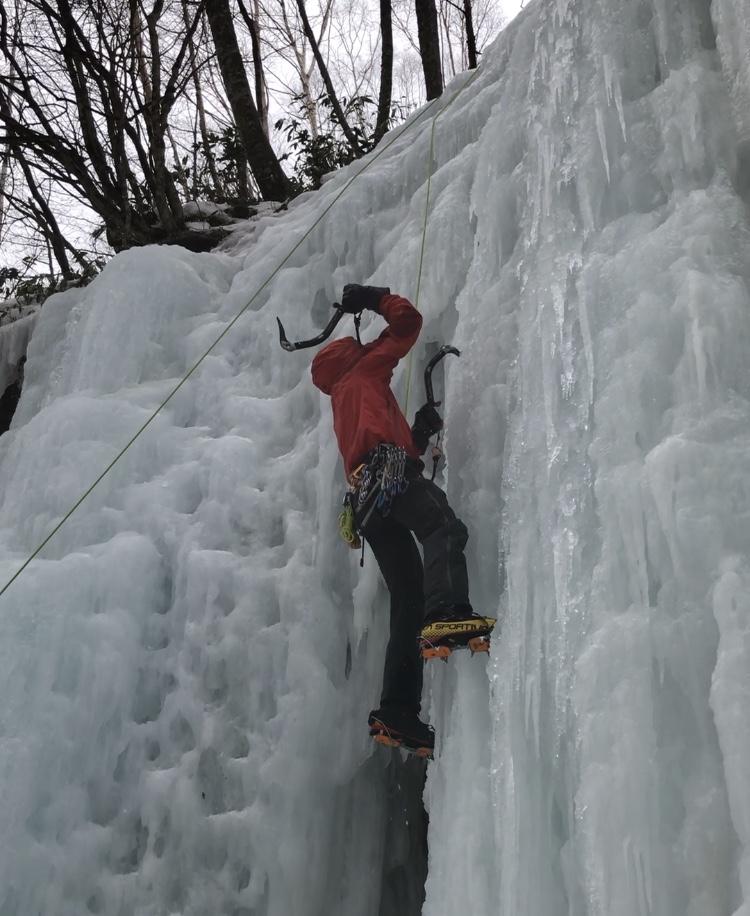 氷柱を乗り移るように登ったり、岩が出てたのでミックスにチャレンジしたり(脆くてダメでした)と色々楽しめました。