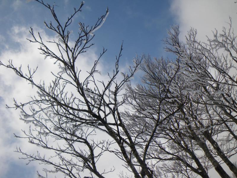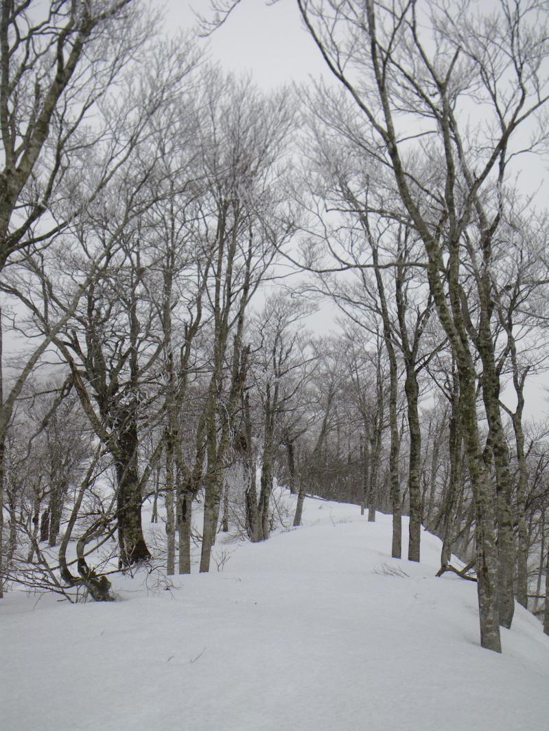 ⑥枝尾根に上がると広い尾根に変わり、樹氷の世界です