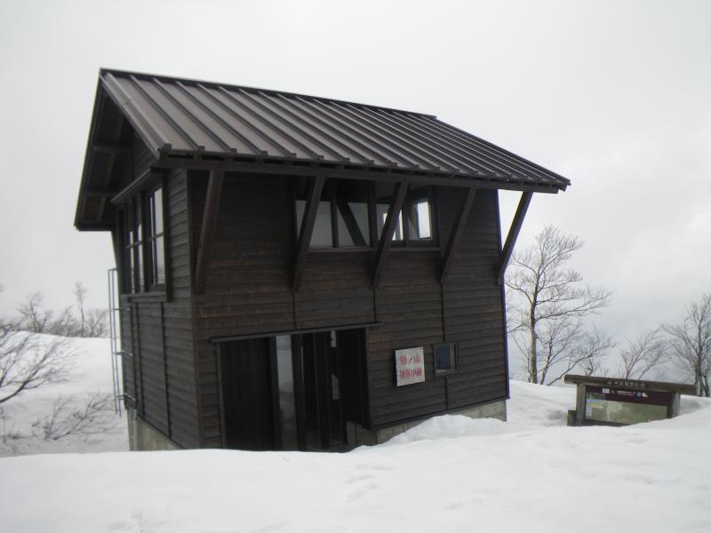 ⑦山頂には避難小屋があり、冬季用の梯子もあります(今回は通常でも入れる雪量です)