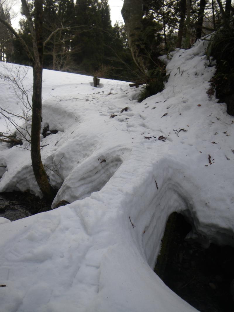 (沢を渡る埋まった橋を通過するのに苦労します)