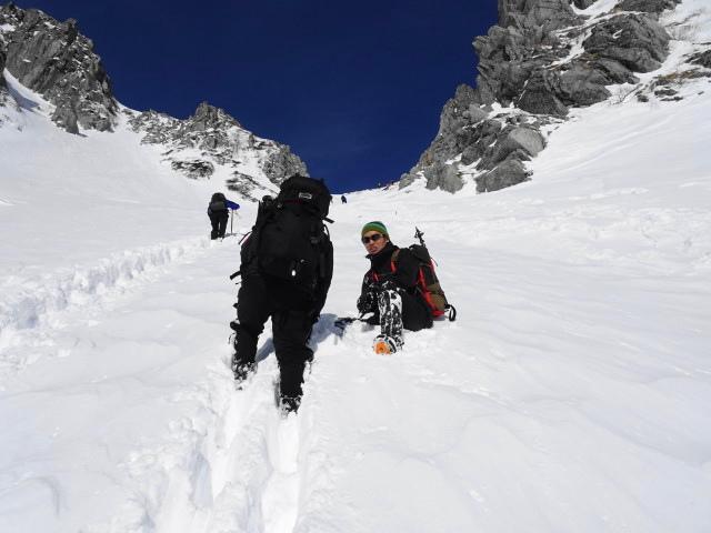 凍り付いた斜面で滑落停止なんて冗談で始めたら滑る滑る。