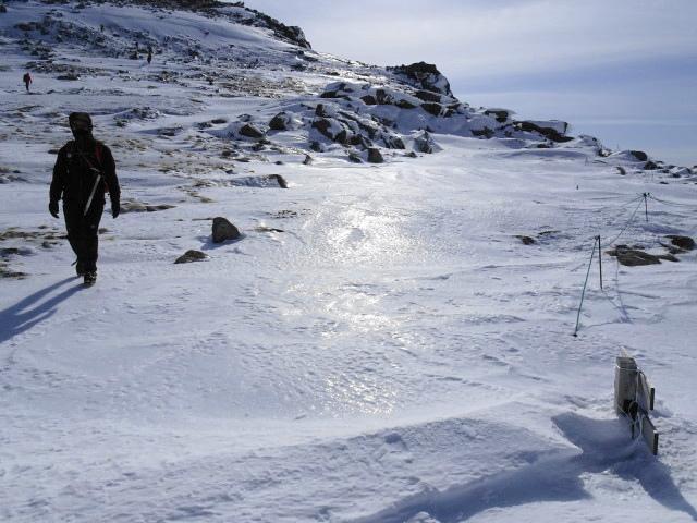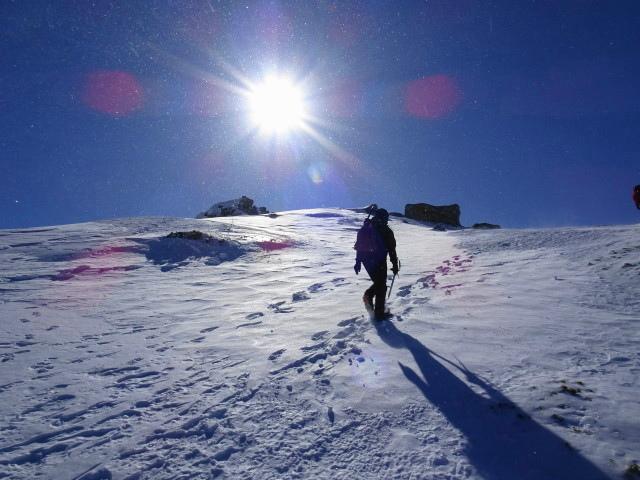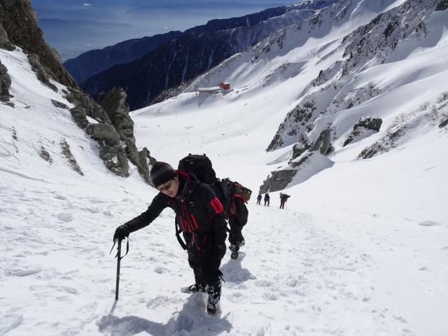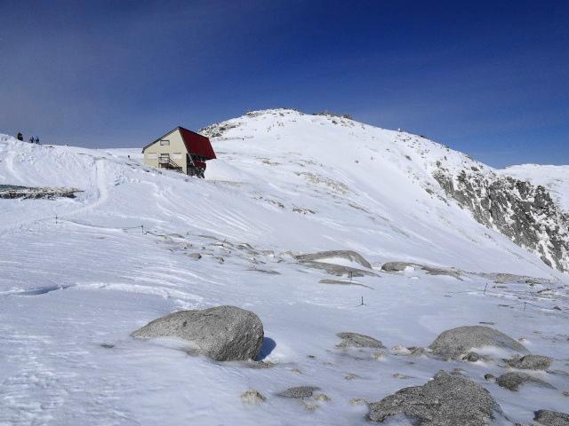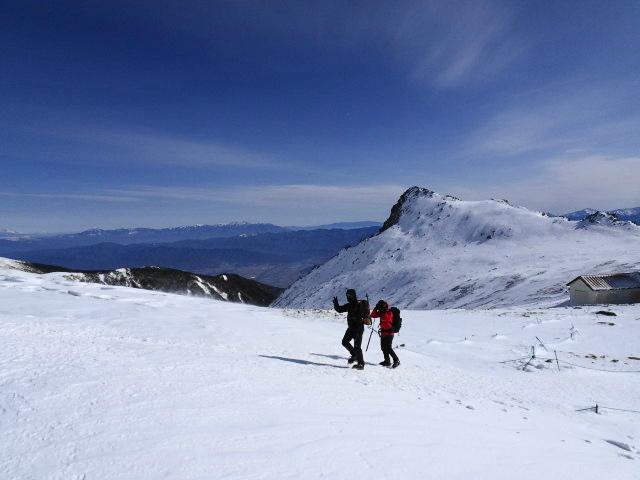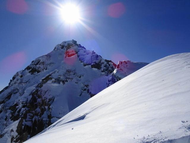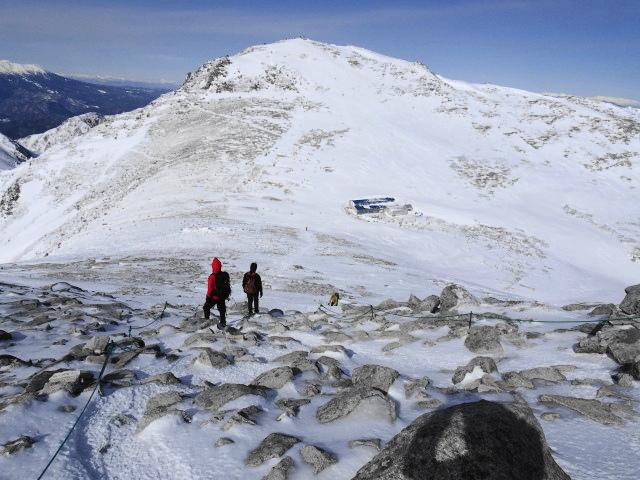 稜線に上がるとそこは3000m。とても風が強く雪が吹き飛ばされ、登山道はかちこちに凍っている部分も多かったです。