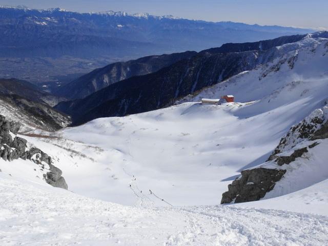 千畳敷カール内は雪が多く本当ならラッセルを強いられると思いますが、なにせ入山者が多い山。