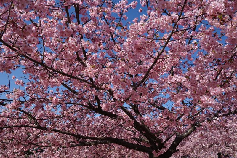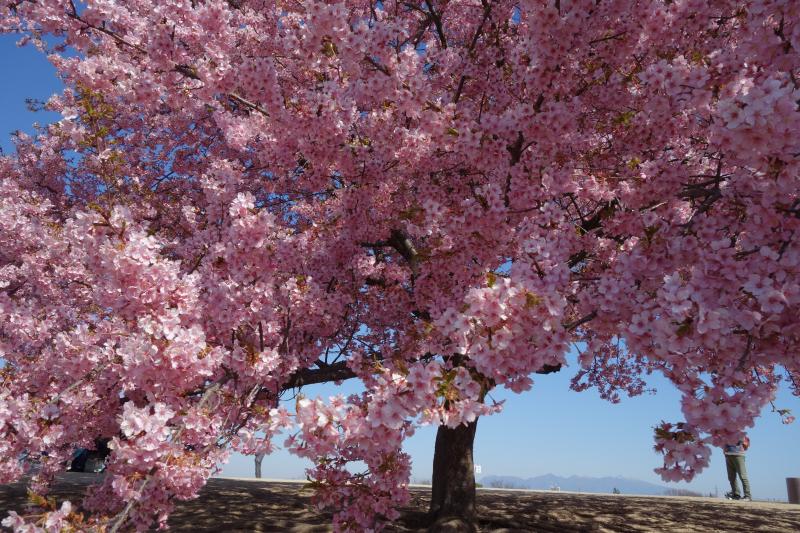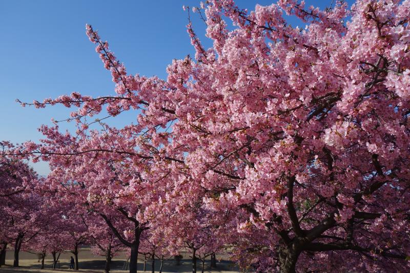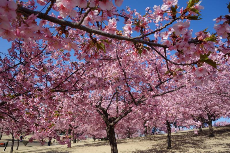 「河津桜がちょうど見頃」と聞いて早速出かけてきました。駅からはやや歩きます。公園には駐車場もあります。いせさき市民のもり公園に到着。遠目からでも河津桜のピンクが目立ちます!丘をかけ登るとそこにはおよそ130本の満開の河津桜!!最早桜に囲まれるというか、桜に包まれているという表現が似合うそんな場所です。圧巻の光景でした。写真撮影する方も大勢いました。まだしばらく見頃は続きそうです。