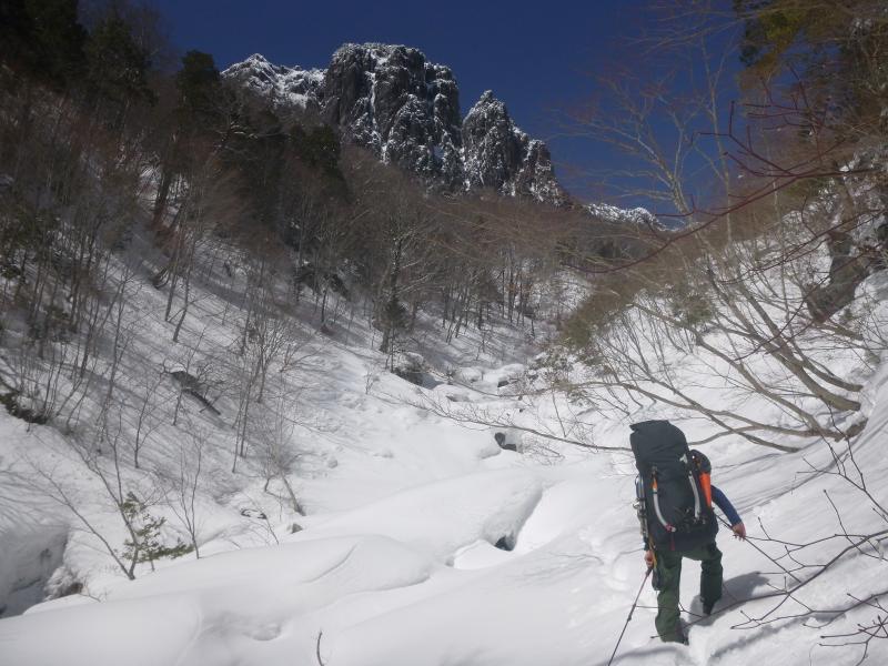 錫杖岳 北沢大滝~本峰正面ルンゼ