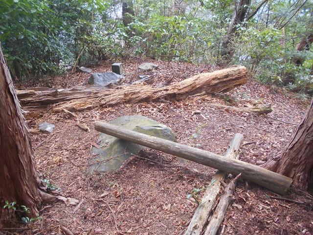 下って行き標高点686m手前の鞍部でうっそうとして怪しい感じの谷への踏み跡へ入る。