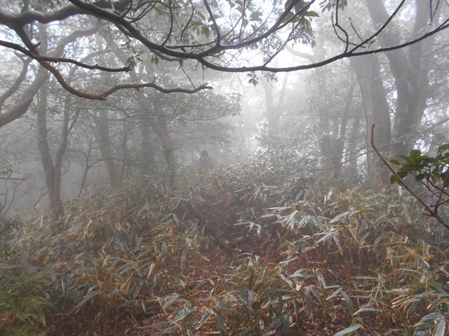 3m以上の笹藪に囲われ道幅は40cmほどしかなく終始見通しが利かず