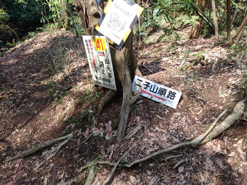 - 風見橋-(20分)-仙元山-(100分)-二子山-(60分)-阿部倉山-(35分)-新逗子駅