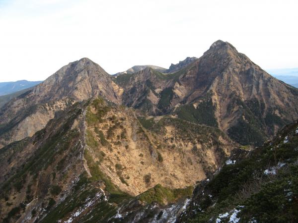 - 1日目:観音平⇒【90分】⇒ヘリポート跡⇒【80分】⇒三ッ頭⇒【45分】⇒権現岳⇒【85分】⇒キレット小屋
