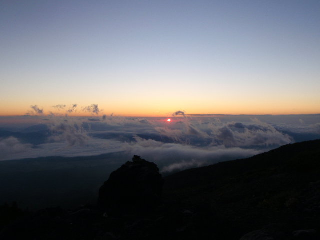 - 五合目(富士吉田口)5:00--六合目6:00--吉田口山頂9:30(昼食)--剣ヶ峯10:30