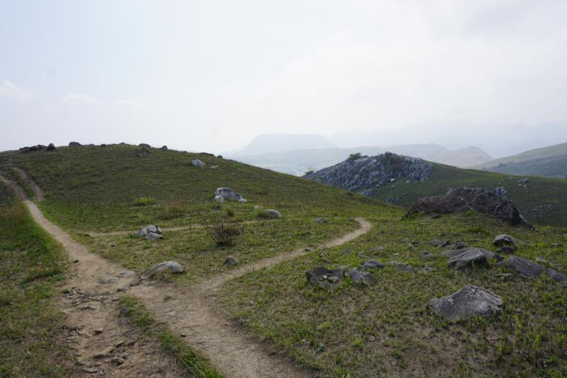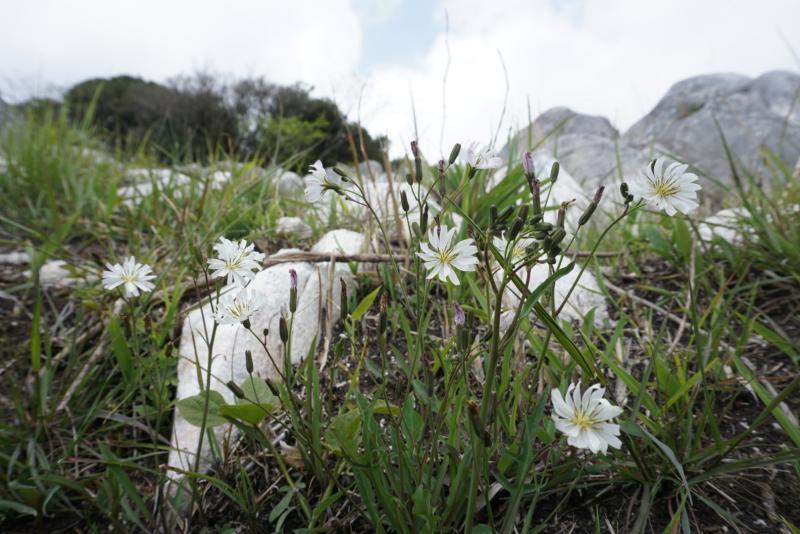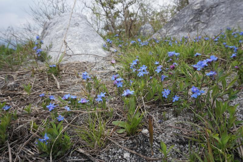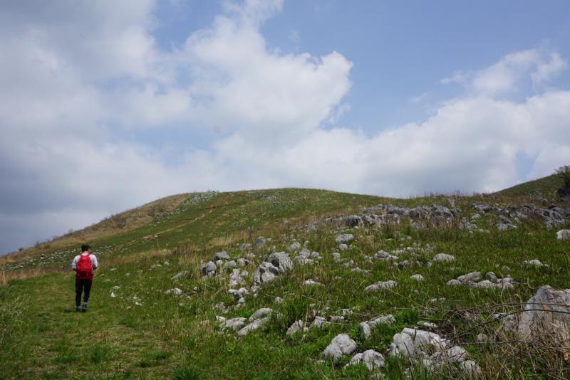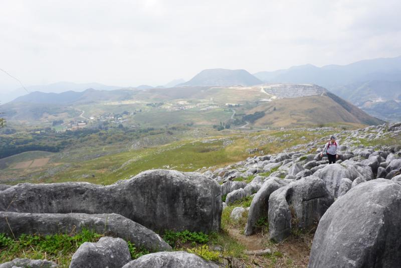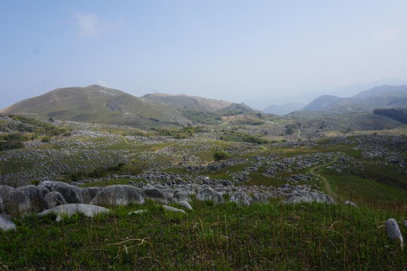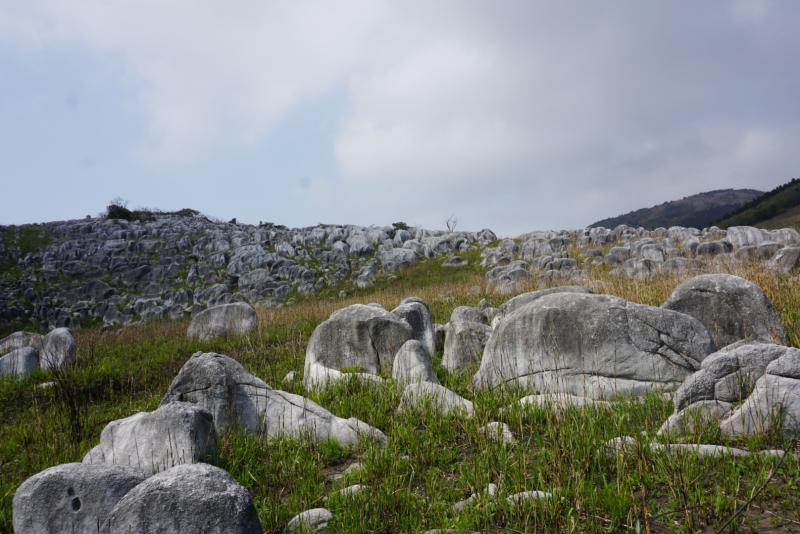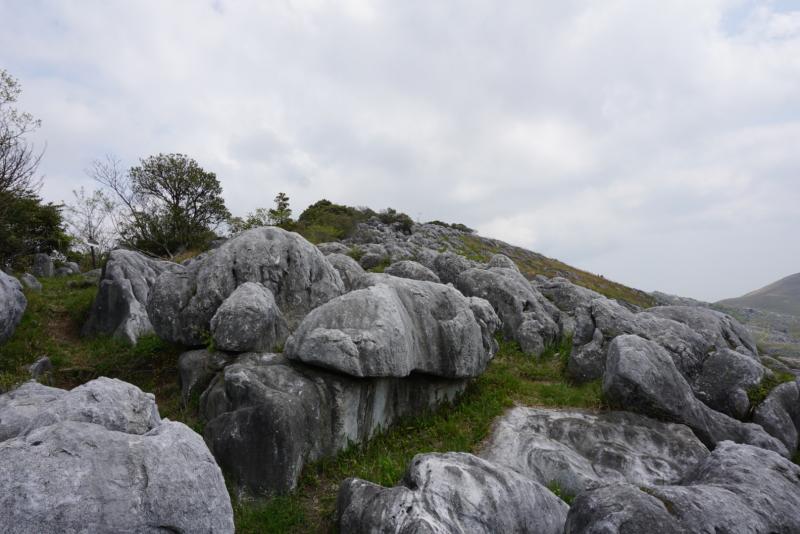 中峠の分岐から西側へ進み、石灰岩の群れの中をどんどん進み、最初歩いた道へ合流。