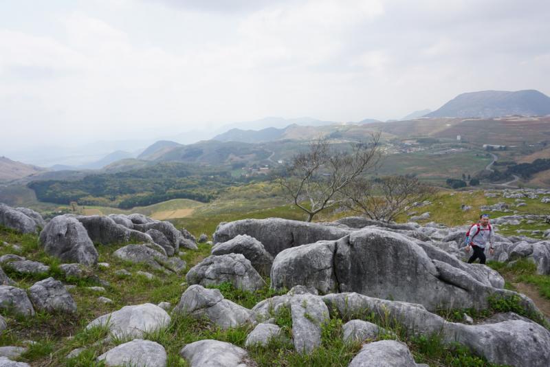 石灰岩の群れの中を歩き、急な下り登りを繰り返し、四方台へ到着。