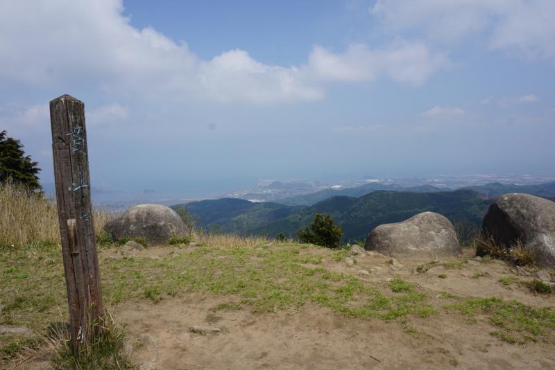 急坂をクリアすると、北九州市街、周防灘が一望できる広い山頂へ到着。