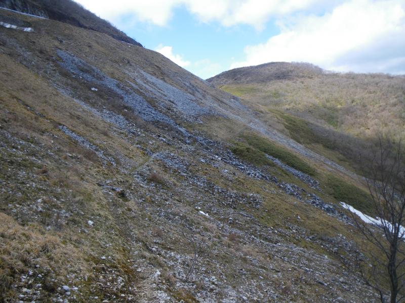 ➅静馬ヶ原へのトラバース道はスリップ注意、特に残雪があれば要注意