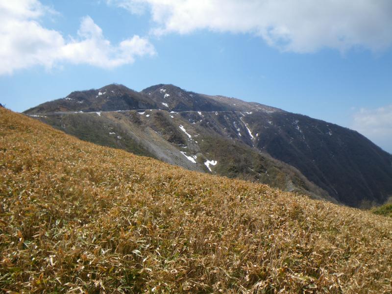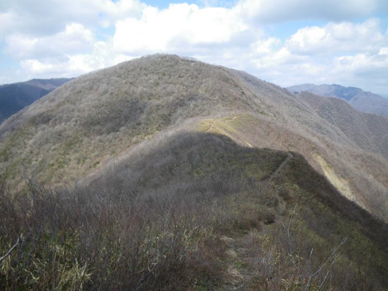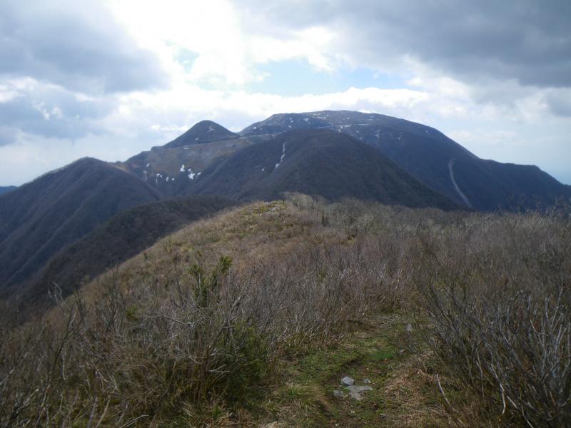 今日は静馬ヶ原の座禅草を見に来ましたが、まるで筍のようにあちこちにニヨキニョキ生えて、面白い。なんとなく湿地に生えている印象ですが、ここは斜面に点々と生えています。本来ならここから伊吹山ドライブウェイ歩きでしたが、予定を変更し、伊吹北尾根へ。伊吹北尾根はかなり前の2月頃に歩いていますが、長~いが歩きやすい尾根だっと印象。無雪期は初めてですがたくさんの花が見られ人気のコース。今ならヒロハアマナあたりが見られるかと思いました。樹木はまだ新緑に程遠く、枝のみ。おかげで展望はすっきり。以外と早く御座峰までたどり着きましたので、大禿山へ。大禿山と御座峰間は草原の稜線で展望がきれいです。