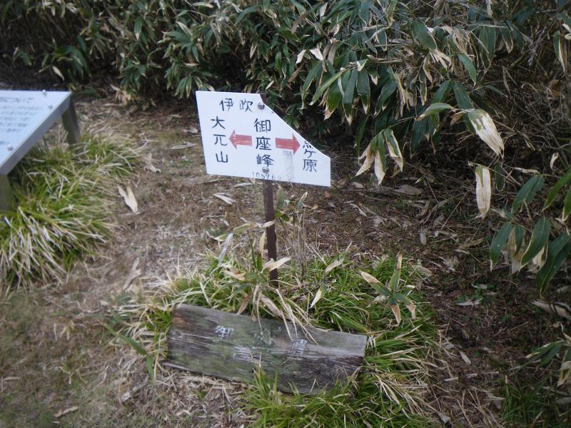 ➄稜線に出ると、方向が変わり、すぐに伊吹山ドライブウェイと静馬ヶ原方面に分岐します
