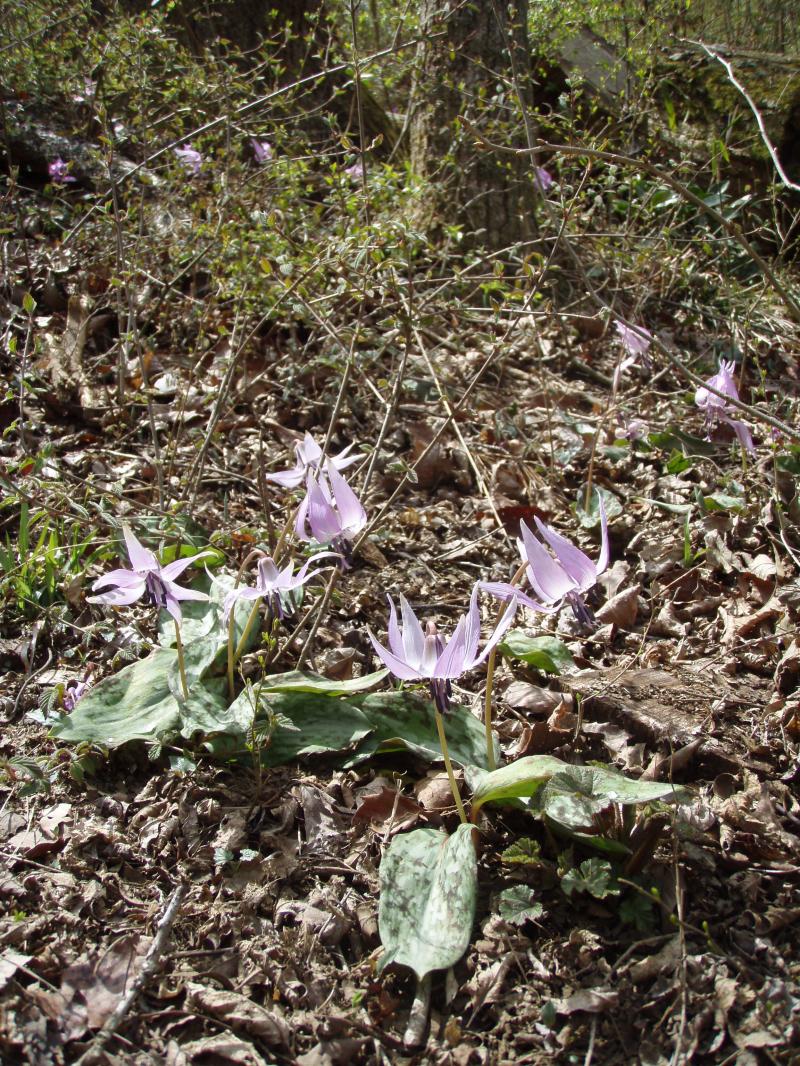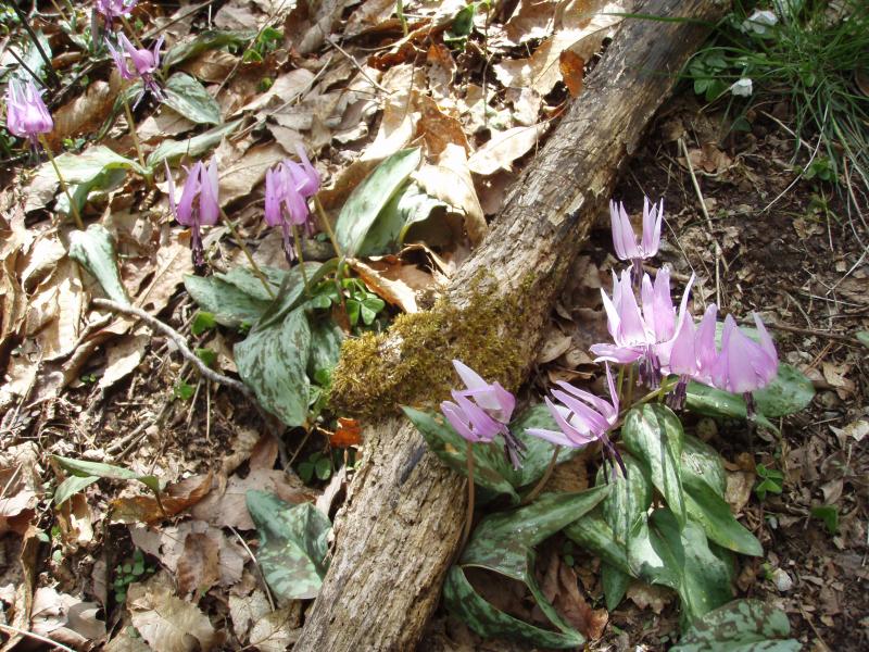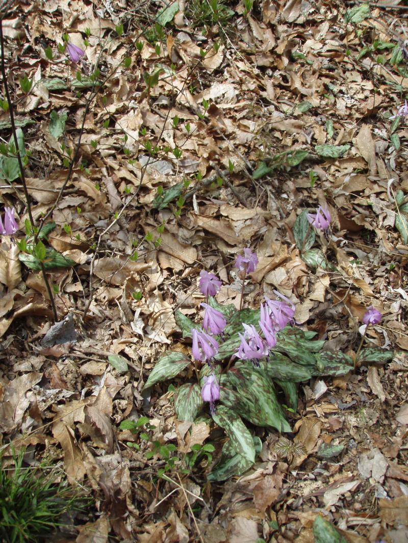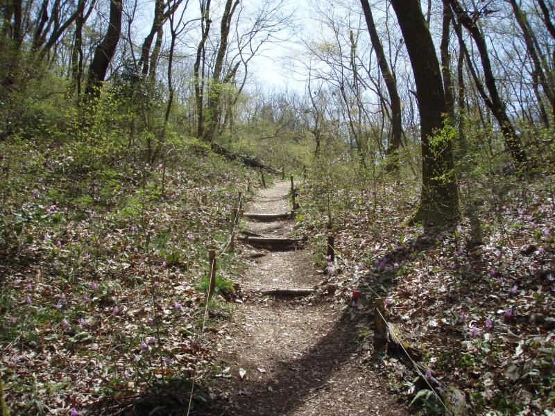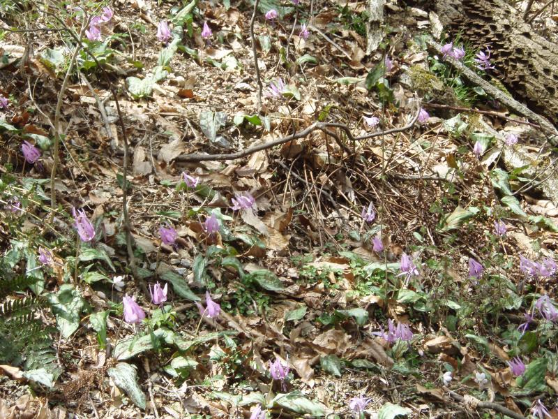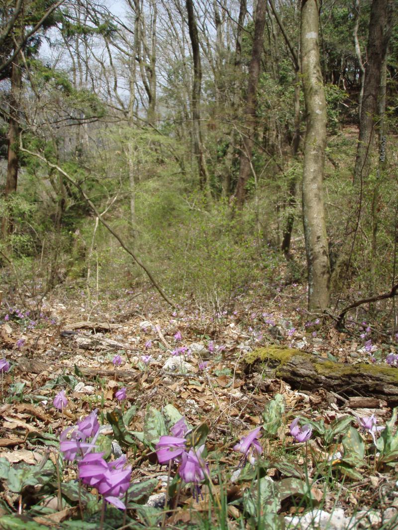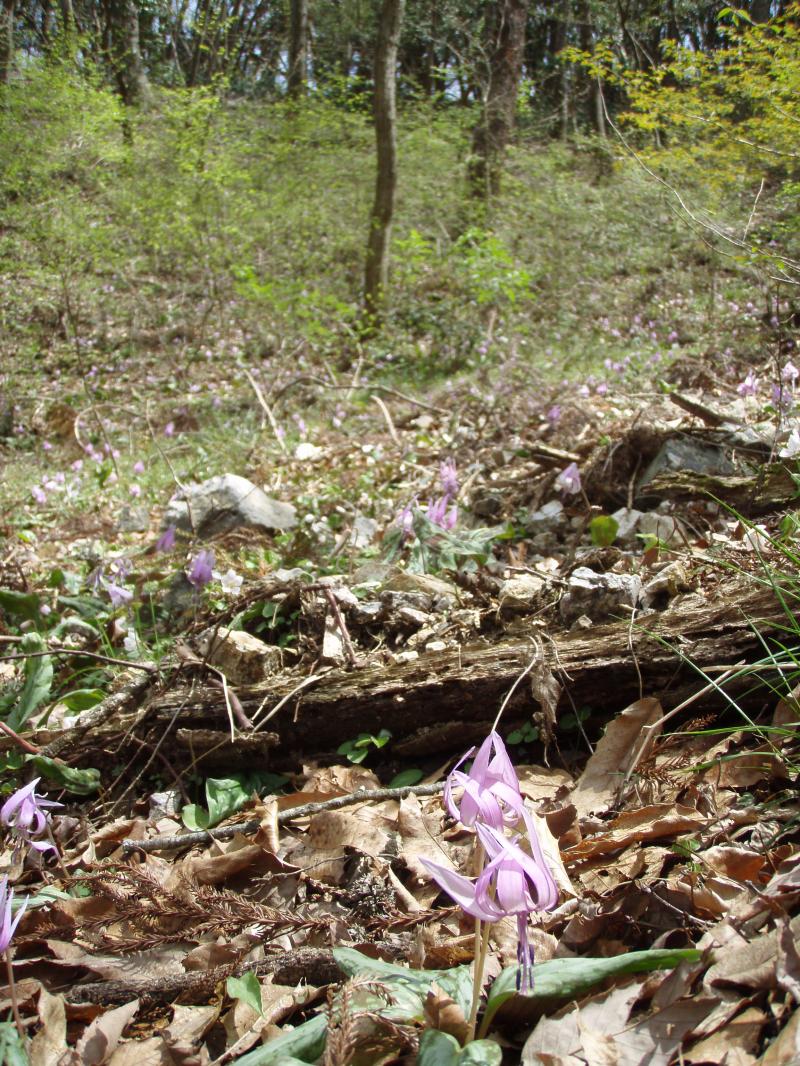 山頂直下にあるカタクリ群生地「炭の谷」「Nの谷」「御陵の谷」を廻ってみましたが、丁度見頃の時期を迎えており、綺麗に咲いていました。この後1週間ぐらいがピークとなるようです。帰路は天皇稜道を下って、正法寺に下山しました。