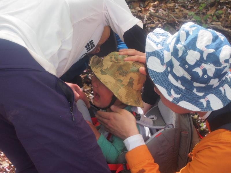 友人の子供も楽しんでいたようで、登りや下りでは花やアリを見つけたり、山頂では笑顔で歩いてました♪ベビーキャリアに乗せられるまでは嫌々で泣いていたけど、歩き出せばすぐに泣き止んで揺れが心地良いのかいつの間にか寝落ちてました(笑)