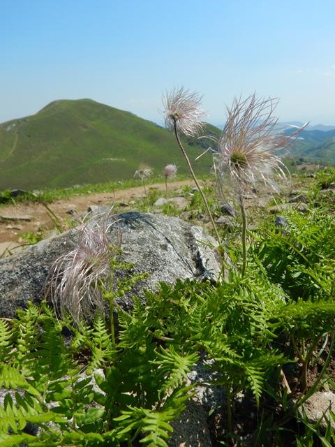 オキナグサの群生地では、花が終わって、ひげの状態が見れました。