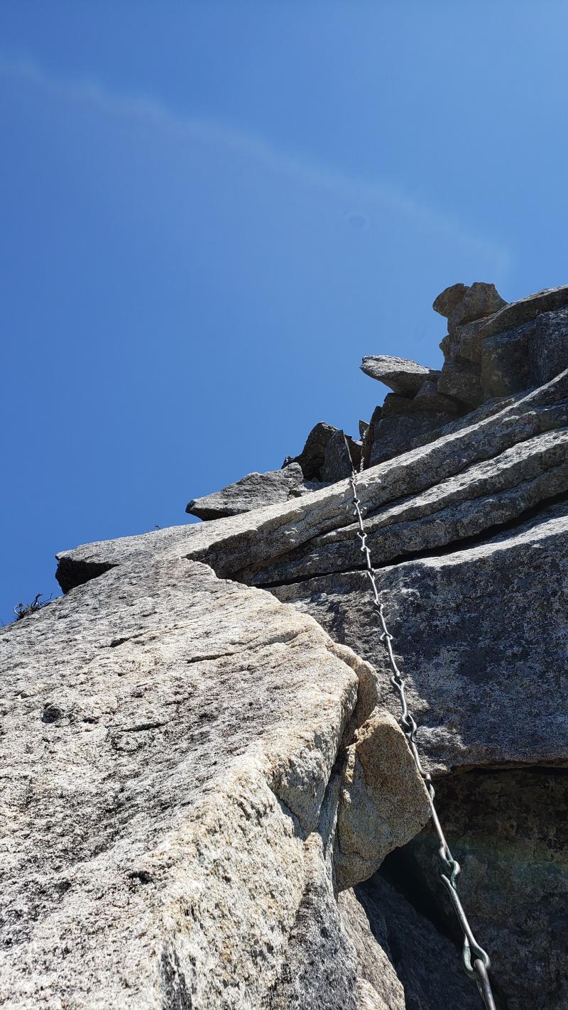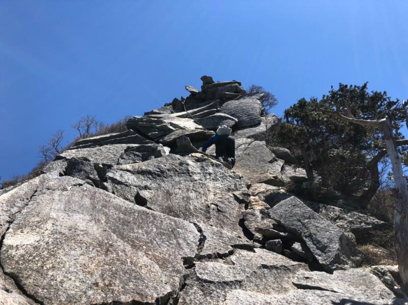 そこから今回の核心でもある大日岳のスラブへ。頼りない細い鎖が一本吊るされているだけで、途中まで行ってみましたがあまりにも危険すぎるので断念し、迂回路から大日岳山頂へ行きましたが、迂回路と言いながらもこのルートもほぼ真上に上がるルートのため注意が必要です。