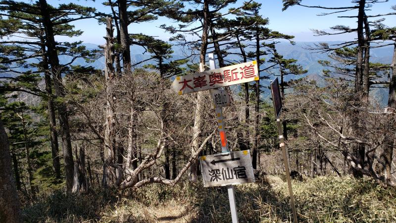 - 太尾登山口(60)千丈平(15)釈迦ヶ岳(30)深仙の宿(30)大日岳(100)太尾登山口
