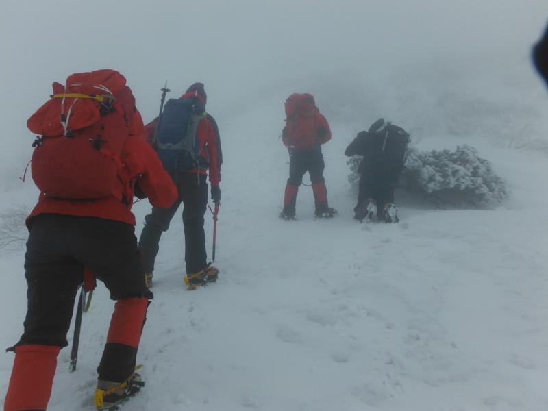 積雪が少なく途中からアイゼンとピッケルは必要 頂上付近はガスが出るとルートがわからなくなります