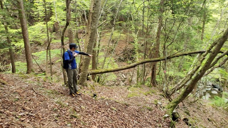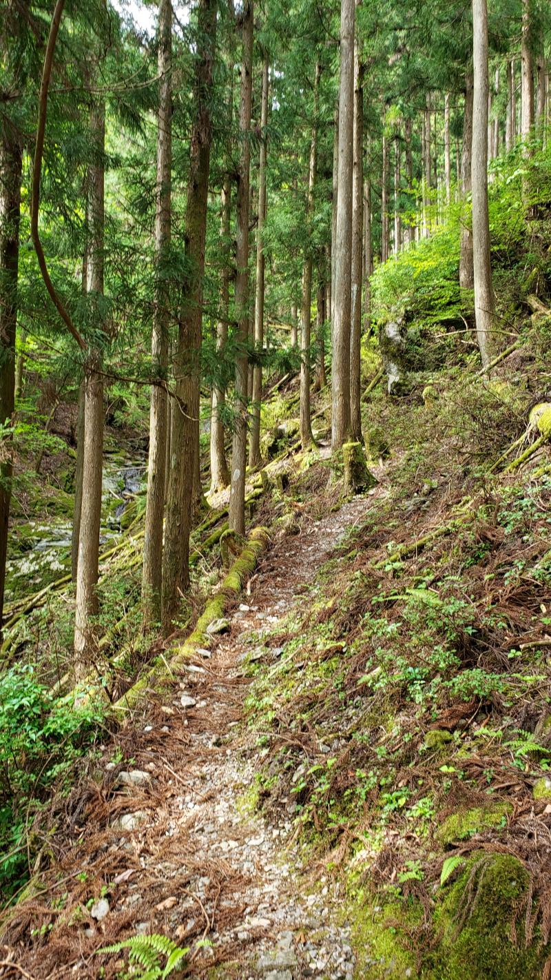 奥又出合までは見事な台高山系の森の中を歩いていきます。人はおらず、静かな時間が流れるとても素敵な場所でした。奥又出合で一息入れて、トラバース気味に下っていきます。途中、道が分かりづらく迷いやすいところもあります。GPSと地形図、わずかに残る踏み跡を慎重に下りましょう。